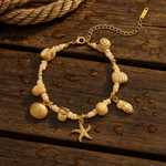 - Materialer: Gyldne muslingeskaller, naturperler og små sandsten udvalgt for deres varme glans og langtidsholdbar skønhed.