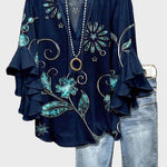 Freja, Turkis blomstertop, er en erkendelse af tidsløs luksus og finpudset håndværk. Den dybe marineblå baggrund kontrasteres smukt af turkise blomster, vævet med omhu, mens volangærmerne tilfører bevægelse og feminin elegance. Den afslappede pasform sikrer komfort gennem dagen uden at gå på kompromis med stil, og materialer af højeste standard samt omhyggelig syning giver Freja en garderobe-klassiker med langtidsholdbar værdi. Den bevidst begrænsede produktion forstærker eksklusiviteten og gør Freja til et samlerobjekt med ægte provenance og omtanke for håndværk.