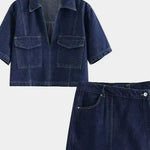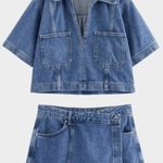 Malina | Denim sæt er en hyldest til tidløs elegance, skabt gennem gennemført håndværk og en bevidst tilgang til oprindelse. Denim-kvaliteten er nøje udvalgt for sin holdbarhed og blødhed, og forenes med et moderne snit: en kortærmet skjorte med rummelige frontlommer og en mini nederdel med diskret lukning. Dette sæt udstråler raffineret enkelhed og en luksuriøs base for hverdagslooket, mens den neutrale blå nuance sikrer alsidighed og langtidsholdbar værdi.