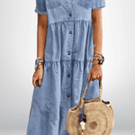 Veyra | Kjole er en sofistikeret fortolkning af en tidløs klassiker, skabt til den moderne garderobe uden at gå på kompromis med arv og håndværk. Den tætte konstruktion og denim af høj kvalitet giver kjolen struktur og komfort, mens de rene linjer og diskrete syninger signalerer tidløs elegance. Begrænset antal i sæsonen understreger eksklusiviteten og den langsigtede værdi, som en ægte samler værdsætter. Den rene silhuet fremhæver figuren uden at være tætsiddende, og gør Veyra | Kjole let at style til både afslappede og mere raffinerede looks.