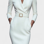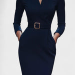 Signe™ er et symbol på tidløs elegance – med et tætsiddende snit, der smigrer figuren, og et justerbart bælte, der fremhæver silhuetten med ynde og balance.Den raffinerede Mao-krave giver kjolen et diskret, men karakteristisk udtryk, mens det bløde, åndbare stof sikrer en følelse af lethed fra morgen til aften.Takket være sit alsidige design er Signe™ lige så perfekt til arbejde som til middage, sociale begivenheder eller en aften ude – altid elegant, selvsikker og naturligt kvindelig.