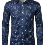 Herre Fyrværkeri Ferie Nytår Fest Knap-Op Blå Langærmet Skjorte