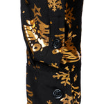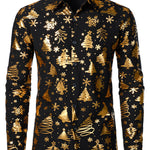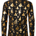 Herre Guld Jul Print Sort Langærmet Skjorte
