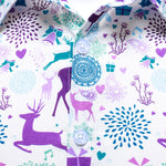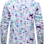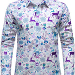 Herre Jule Rensdyr Festlig Print Xmas Ferie Hvid Langærmet Skjorte