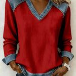 Kvindernes juleinspirerede patchwork kunst V-hals top