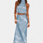 Ella | Sæt udtrykker luksus gennem brandets arv og perfektion. Hver detalje afslører håndværkets omhu: en draperet halterneck-top, en skulpturel silhuet og en åben ryg, der tilfører et moderne, sensuelt præg. Det lette stof bevæger sig med dig og garanterer velvære gennem hele dagen. To-delt designet giver alsidig styling til forår og sommer og forener lethed med raffinement i en tidløs æstetisk. Med begrænset oplag tilføjer Ella | Sæt eksklusivitet og en langtidsholdbar værdi, der tiltaler samlere og modebevidste.
