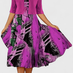 Estrella | Sæt udstråler tidløs elegance gennem forfinet håndværk og kvalitetsmaterialer. Den lette midikjole og den skræddersyede blazer formgiver en feminin silhuet, der passer lige godt til solrige bydage og særlige arrangementer. Sammen skaber de et gennemført look, mens de kan mixes til alsidige sommerstile. Stoffets lethed giver komfort og åndbarhed hele dagen, uden at gå på kompromis med sættets eksklusive karakter. Håndværkets kvalitet ses i snit, finish og materialevalg, der signalerer klassisk arv og lang levetid. Begrænset tilgængelighed tilføjer en ekstra dimension af eksklusivitet og gør Estrella | Sæt til en tidløs investering i garderoben.