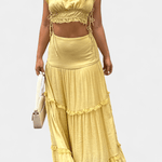 - Let maxi-skjørt med bløde fald og delikate lag; volanger svæver smukt ved hvert skridt.