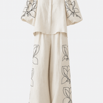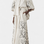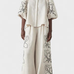 Silje | Bluse sæt forener naturlig komfort med tidløs elegance fra et dansk designhus. Sættet er fremstillet i en bomulds-lin-blanding, der ånder og føles let på varme dage, mens pufærmer og bredt ben skaber en luftig silhuet. Det blomstrede mønster tilfører et friskt, moderne præg uden at gå på kompromis med raffinementet, hvilket gør Silje-sættet alsidigt til både afslappede dage og særlige øjeblikke. Bevidst begrænset tilgængelighed understreger eksklusiviteten og gør Silje til et ægte samlerobjekt, der står tidløst i garderoben. Sættets konstruktion afspejler håndværkets omhu og den danske designarvs arv, en investering i stil, der fortsat vil værdsættes i mange sæsoner.