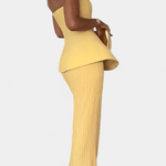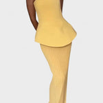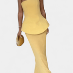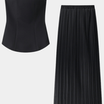 Thea | Sæt udstråler sofistikeret elegance, hvor håndværk møder tidløs luksus. Det strapløse bandeau-top fremhæver hals og décolleté med rene linjer, mens den let foldede nederdel følger kroppens bevægelser i en blød flair. Thea skaber en løftende, afslappet silhuet, der passer til solrige ferier, middage og stilfulde dagslooks, og den gennemførte pasform giver en naturlig selvtillid. Med håndværk og materialer af høj kvalitet bevares struktur og elegance over tid, hvilket gør sættet til en varig investering i garderoben og stilens arv. Begrænset antal og en tidsløs linje understreger Theas prestige og skaber potentielt samlerværdi gennem sæsonerne. Denne kombination af detaljer gør Thea til en tidløs investering, der kan mikses med andre dele og bevare sin raffinerede fremtoning sæson efter sæson.