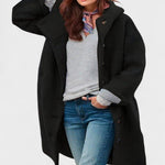Den varme, men lette konstruktion skaber en afslappet silhuet, der falder smukt over både jeans og kjoler – et design, der føles lige så godt, som det ser ud.