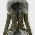 - Hætte med kant af kunstpels tilføjer raffinement og ekstra kuldebeskyttelse.