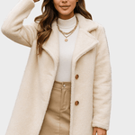 Den tætsiddende varme, den rene silhuet og det minimalistiske knapdesign skaber et alsidigt udtryk, der passer både til formelle møder og afslappede dage.