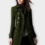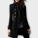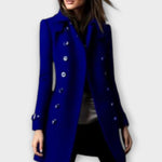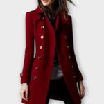 - Design og detaljer: Den tidløse, to-rækkede knaplukning skaber et rent look, mens den tætte silhuet fremhæver figuren uden at hæmme bevægelsen.