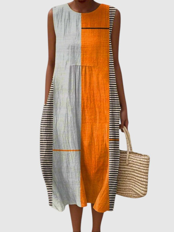 Dette er vores bedst sælgende hverdagkjole, som føles lige så ubesværet, som den ser ud. Med sit lette, åndbare stof og den legende blanding af iøjnefaldende polka prikker samt livligt farveblokering i gyldengul, sart fersken og creme, forener den komfort og charme i et unikt design. Uanset om det er til brunch, stranden eller kombineret til en afslappet aften – denne kjole giver dig en glad og samtidig stilfuld udstråling, som du altid vil vende tilbage til.