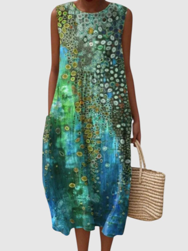 Dette er vores bedst sælgende hverdagskjole, nu med et fascinerende, rev-inspireret design i dybe grønne nuancer, dybe blå toner og gyldne koral accenter. Fremstillet af let, åndbart stof og med en afslappet silhuet forener Zara Hverdags Elegant Midi-Kjole ubesværet stil med komfort hele dagen. Uanset om det er en gåtur på stranden, brunch med venner eller stylet til en luftig aften – denne kjole vil blive dit yndlingsstykke til et afslappet og samtidig kunstnerisk look.