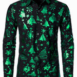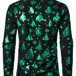 Herre Jul Print Regular Fit Grøn Langærmet Skjorte