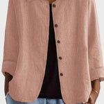 - Design og stil: Klassisk krave, minimalistisk front og 3/4 lange ærmer skaber en tidløs silhouette, der nemt kan styles med jeans, nederdel eller buks.