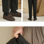 Emil™ | Premium Klassiske Bukser fra Leviana udstråler moderne elegance og tidløs kvalitet. Nyd luksus med en konstruktion, der kombinerer premium materialer og en specialbehandling, som giver en silkeagtig fornemmelse og holdbarhed. Den elastiske talje sikrer komfort uden at gå på kompromis med snit og stil — perfekt til alle anledninger. Emil™ er en investering i en garderobe, der holder sin værdi over tid og bærer Leviana-arven i hvert sting.